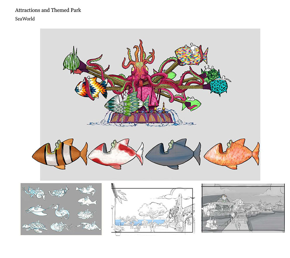 Here are samples of concept renderings and schematic drawings for Parade floats for Chimelong Ocean Kingdom Park and other events and attractions.